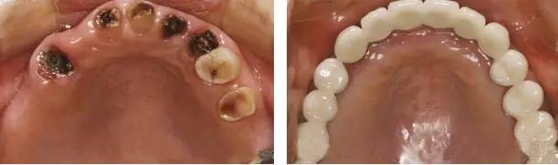 3、种植体在行使支持和固位义齿功能的条件下,无任何临床动度。功能好。咀嚼效率达70%以上。